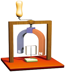 注意:这里的电磁铁线圈中通电时,不是通交变电流,而是直流,这与涡旋电场产生涡流不同。电学测量仪表中的磁场也是恒定磁场,铝框在磁场中转动时产生感应电流。