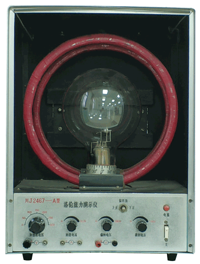 图 1-16 所示的装置称为洛伦兹力演示仪。玻璃泡内的电子枪发射出阴极射线,使泡内的低压惰性气体发出辉光,这样便可显示出电子的轨迹。