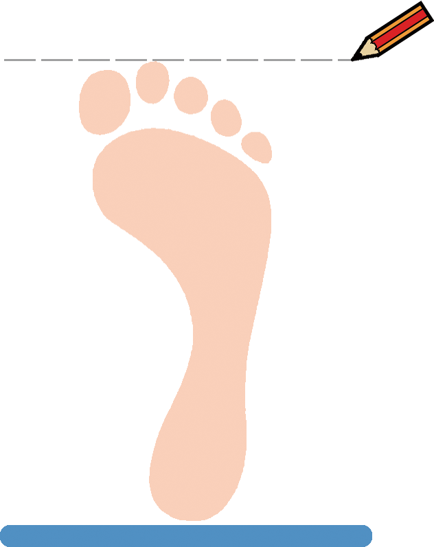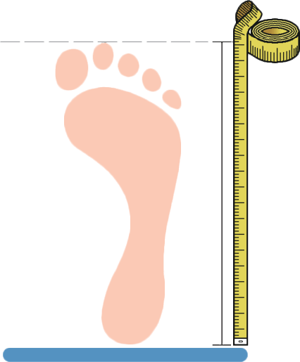 5. 试用图 1–1–10 所示的方法测量自己的脚长。结合其他同学的测量结果,归纳鞋码与测量结果的对应关系。