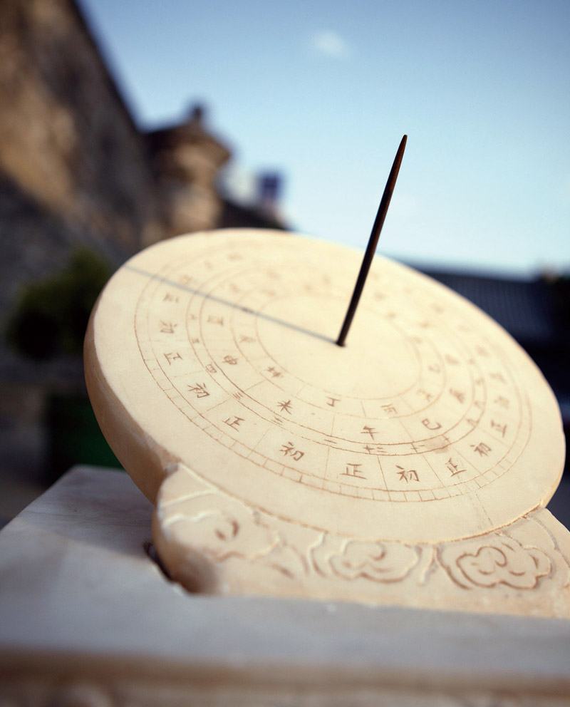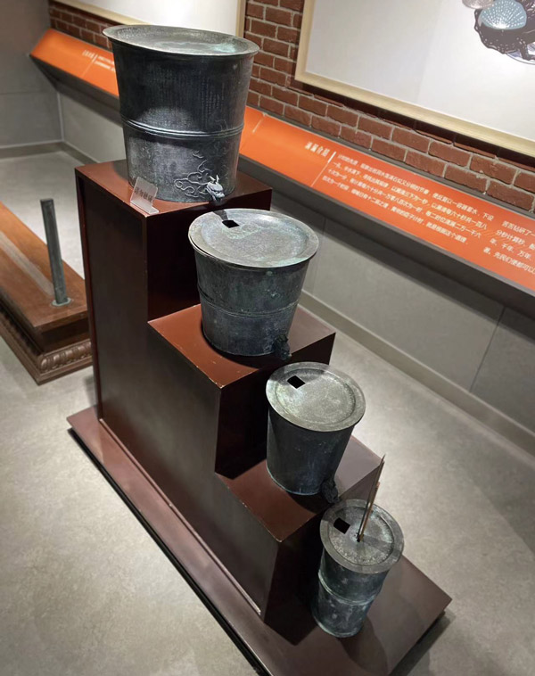 “时”和“刻”是比年、月、日更小的时间单位。如图 1–2–3 所示,为了满足生产、生活的需要,古人发明了日晷、漏刻等工具来测量时间。日晷利用一天中不同时刻晷针影子的位置变化将晷面划分为十二时辰。