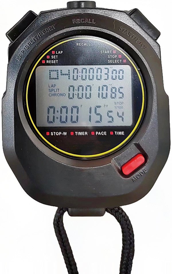 在计时模式下,按下“启动”按钮,电子秒表开始计时。按下“暂停”按钮,电子秒表停止计时,屏幕上会显示记录的时间。按下“归零”按钮后电子秒表显示的时间会重置为零。大部分电子秒表有分段计时功能,不仅可以将整个计时过程分解,还可以递加计时。