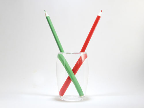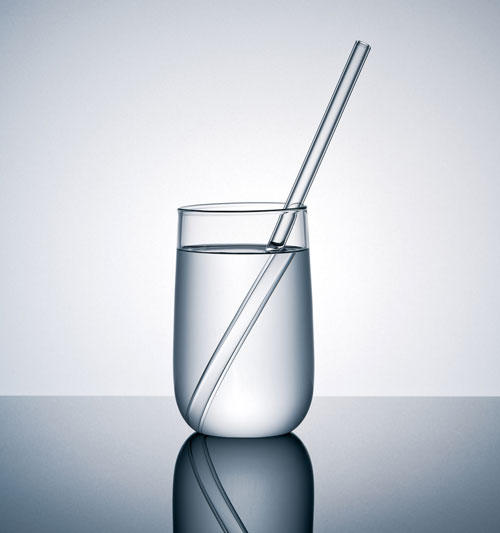 如图 9 所示,一根笔直的玻璃吸管斜放入玻璃桌面上的一杯水中。