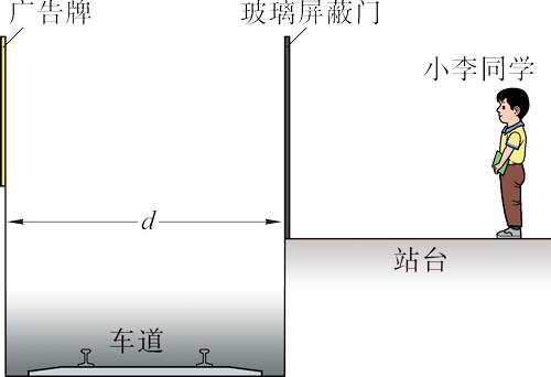 10.如图 8 所示,小李同学站在地铁站台上,他透过玻璃板制成的屏蔽门,可以看到车道对面墙壁上的广告牌,以及自己在屏蔽门后面的虚像。小李同学根据该现象设计了在站台上估测玻璃屏蔽门到对面墙壁之间距离 d 的实验,并在小王同学的帮助下估测出了这段距离,试填写相关实验步骤。