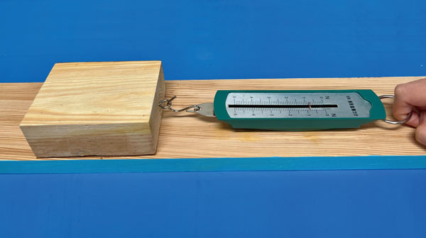 ① 如图 5–4–3 所示,将木块置于已固定在桌面的木板上,使用弹簧测力计沿_________缓慢拉动木块。记录弹簧测力计的示数,即为_________的大小。