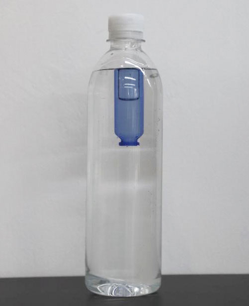 挤压矿泉水瓶,观察浮沉子的浮沉情况。