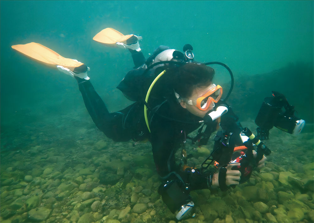 载人潜水器“奋斗者号”(图 7–3–1)配有 4 块压载铁,总质量约 2 t。入水时,由于重力大小大于浮力大小,“奋斗者号”下沉。当“奋斗者号”完成作业时,它会释放压载铁开始上浮。万一“奋斗者号”失去动力,压载铁会自动脱离,使“奋斗者号”上浮以避免危险。