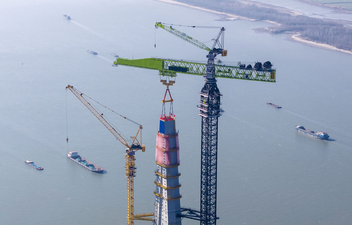 2023 年 4 月,我国生产的 R20000–720 塔式起重机(图 8–2–8)正式下线交付,它的最大起重量可达 720 t,最大起升高度约 400 m,相当于一次将500辆小轿车起吊至 130 层楼的高度。它融合了 158 项创新科研成果、305 项发明专利,其中包括 60 余项核心关键技术和 12 项世界首创,是名副其实的大国重器。