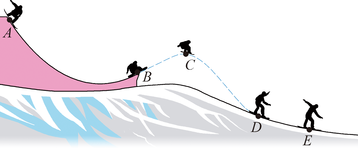 (1)运动员从 B 点到 D 点过程中,动能与重力势能如何转化?