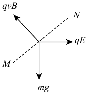 AB、带电体在复合场中能沿着 MN 做匀速直线运动,可知粒子受力情况如图所示。