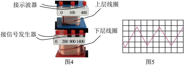 (3)小明将两个线圈按图 4 方式上下叠放。下层线圈输入电压信号如图 5 所示,上层线圈与示波器相连,则示波器上显示的波形为________。
