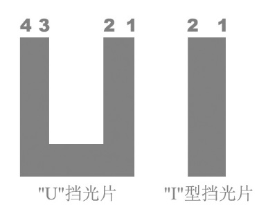 其中“I型”、“U型”为如图64所示两种挡光片,“I型”挡光片从右到左的两边缘分别用1、2表示。“U型”挡光片从右到左的四边缘分别用1、2、3、4表示。假定挡光片自左向右运动,采用“I”型挡光记录下的时间自边缘1挡光开始计时,至边缘2停止挡光结束;采用“U”型挡光记录下的时间自边缘1挡光开始计时,至边缘3挡光结束停止计时。