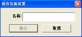 ,用于保存实验过程中的设置,便于以后进行同类实验时调用。“保存实验设置”的内容包括:传感器采集频率,组合图线中添加的图线、增加的变量、图线的设置等,组合图线的详细操作见P29“组合图线”一文。点击该图标,弹出如图66所示窗口,在名称一栏中填写实验名称,点击“确定”即可保留在指定的文件夹中。名称支持数字、字母或汉字形式。