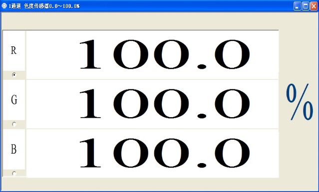 e)色度传感器:将色度传感器中配备的比色皿中放入约3ml蒸馏水,打开传感器上盖,调整比色皿的两磨砂面与传感器长轴方向平行,将比色皿插入到传感器中,盖上传感器上盖,点击控制面板上“校准”按钮。此时,没有弹出类似上述传感器校准窗口,但传感器数据窗口中表示红(R)绿(G)蓝(B)三种可见光的透光率应为100%(图80)。