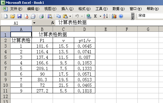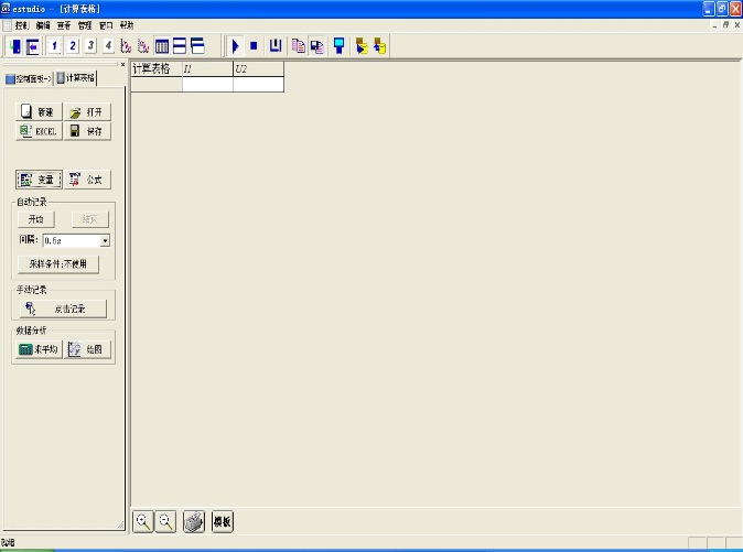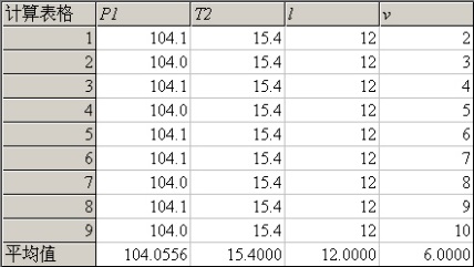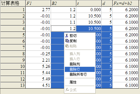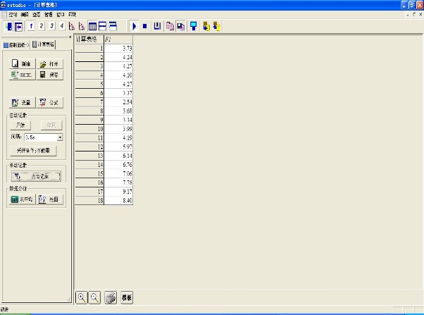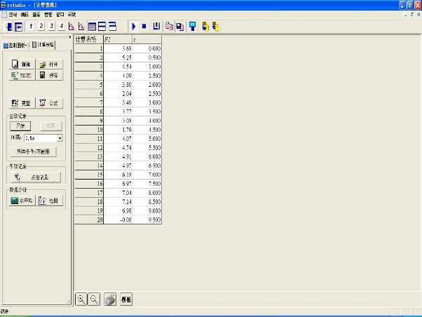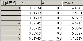 ,可打开如图86所示的计算表格窗口。该窗口支持鼠标拖动和缩放。表格左起第一列为次序列,向右为实验数据列。实验数据列最多为四列。