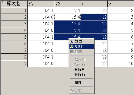 计算表格中所有数据均可以复制。复制好的数据可以在计算表格中粘贴,也可以在其它软件 (如Word、Excel、MATLab等) 中进行粘贴。