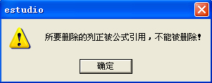 ▲注意:1、删除某一列时,必须保证该列中的数据不被后面的公式利用,如果出现序号与保存时完全相同。此情况,将弹出图106所示提示;2、删除列功能仅可用于删除变量或表达式列,来自传感器的实验数据列不能被删除。