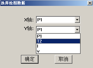 点击“绘图”,在“选择绘图数据”窗口(图98),通过下拉菜单,选择X轴和Y轴分别代表的测量值,点击“确定”,可在绘图窗口描绘出所选择数据对应的点。具体功能详见P29“组合图线”。