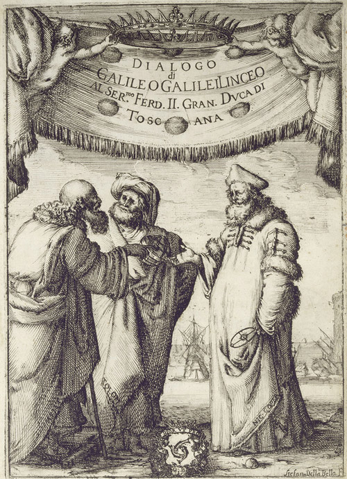 1616 年,有人控告伽利略在宣传哥白尼学说。罗马教会法庭警告他,不许再提倡这类学说,否则将受到审判和监禁。然而,伽利略并没有妥协。他经过多年的埋头研究,又撰写了一部宣传哥白尼学说的重要著作,书名《关于托勒密和哥白尼两大世界体系的对话》。
