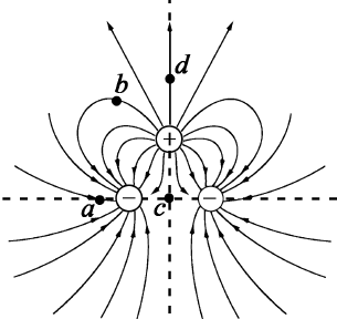 【2015年江苏理综8】两个相同的负电荷和一个正电荷附近的电场线分布如图所示。c是两负电荷连线的中点,d点在正电荷的正上方,c、d到正电荷的距离相等,则( ACD )