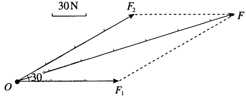 3.两个力互成 30° 角,大小分别是 90 N 和 120 N。通过作图求出合力的大小和方向。如果这两个力的大小不变,两个力之间的夹角变为 150°,通过作图求出合力的大小和方向。