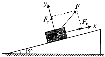 提示:Fx = Fcos(45° − 15°) = 87 N,Fy = Fsin(45° − 15°) = 50 N。
