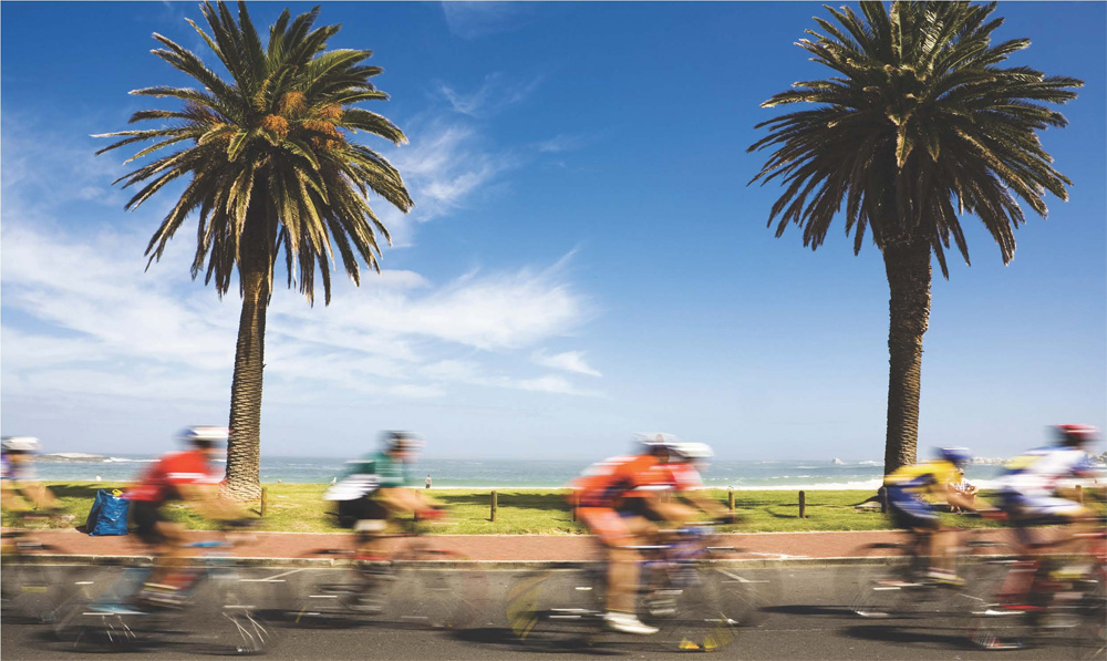 自行车运动是人们喜爱的一种健身运动。当骑手骑着自行车“风驰电掣”般从照相机镜头前通过时,所拍摄的影像在骑手运动方向的拖影反映了骑手在曝光时间内运动的快慢。通过观察照片可以感受速度、位置变化以及所用时间之间的关系,为经历从具体事例抽象为物理模型,建立速度概念做铺垫。教材第 13 页对此有所呼应。