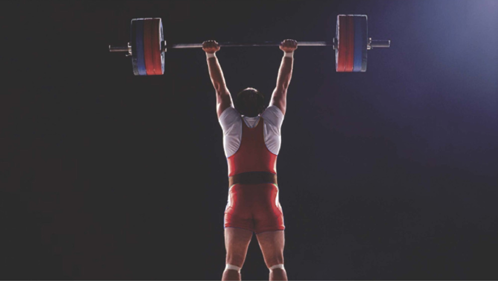 图 3–1 运动员将杠铃举过头顶后保持不动