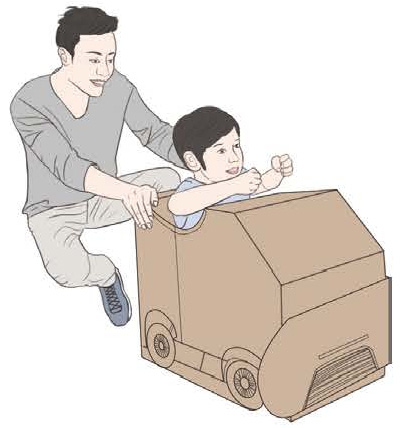 图 3–11 父亲推装饰成小车的箱子