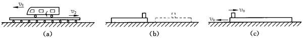 需要指出的是,摩擦力并不总是充当阻力,有时候摩擦力可以充当动力。例如,人总足靠后脚朝后蹬地,从地面获得向前的摩擦力而行走。又如,人骑自行车时,人蹬车使后轮转动起来主动朝后“蹭地”,地面便给后轮一个向前的摩擦力,驱动自行车前进。与重力、弹力的作用总是相互的一样,摩擦力的作用也总是相互的,并且,两个物体之间相互作用的一对摩擦力,可以都充当动力,也可以一个充当动力、另一个充当阻力,还可以都充当阻力。例如,取一块长方形玻璃板放在水平桌面上,在玻璃板下垂直长边的方向均匀垫上几根相同的细玻璃棒,将一辆上满发条的玩具车放在玻璃板上并由静止释放发条,玩具车和玻璃板便同时向相反方向运动起来,如图7(a)所示。究其原因,玩具车被释放后,其发条使车轮转动起来主动向右“蹭板”,给玻璃板一个向右的摩擦力使其从静止开始向右运动;同时,玻璃板对车轮施以反作用的摩擦力,使车从静止开始向左运动。此时,一对相互作用的摩擦力均充当动力。再如,用力水平向右抽置于水平桌面上的书,使放在书前端的文具盒在相对书向左滑动的同时,被书带着相对桌面向右前进一段距离,如图 7(b)所示。分析上述过程,文具盒受到书给它与相对滑动方向相反,即水平向右的摩擦力,充当使文具盒相对桌面向右运动的动力,而书受到文具盒给它的反怍用的摩擦力方向水平向左,充当阻碍书相对桌面向右运动的阻力。这里,两个物体之间相互作用的一对摩擦力,一个充当动力,另一个则充当阻力。又如,将一块足够长的木板置于光滑水平面上,在木板左端叠放一个物块,木板与物块的质量相等,如图 7(c)所示,在木板和物块同时以大小相等、方向相反的水平初速度开始运动直至静止的过程中,木板和物块之间相互作用的一对滑动摩擦力则均充当阻力。