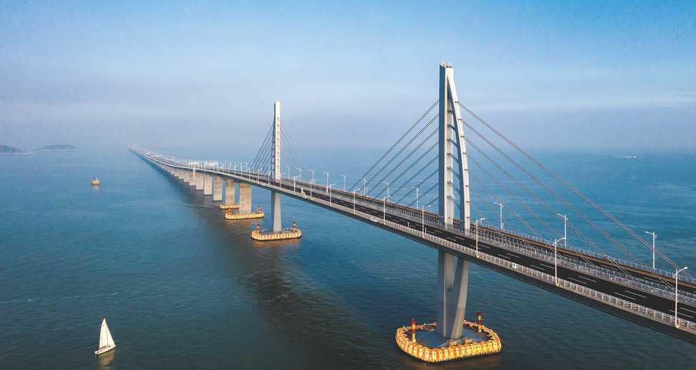 在日常生活中会遇到形式各异的桥梁,港珠澳大桥的“中国结·三地同心”主题斜拉索塔为研究力的合成提供了真实情境,结合本节主题将直观地理解力的合成的条件和意义。