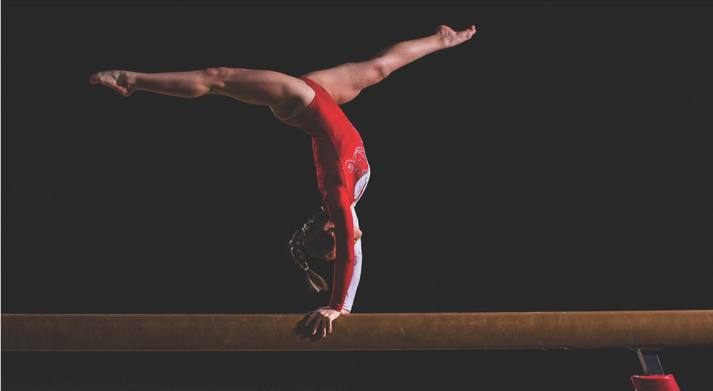 平衡木运动正像它的名字那样,需要运动员具备卓越的平衡能力。她们往往要在一根离地 1.2 m、宽度仅为 10 cm 的横木上做出一连串的动态翻腾动作后突然静态支撑。支撑动作必须保持 2 s 以上才被认为完成了动作。