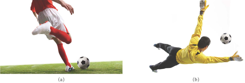 如图 4–8 所示,足球赛场上,运动员开球时踢球的力使球由静止开始运动,球的速度变大;守门员对球的力改变了球的运动快慢和运动方向。可见,物体的加速度与物体受到的力有关。