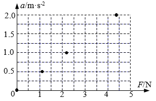 (1)探究加速度与物体受力的关系时,保持小车质量不变,改变小车所受的作用力,测得了下表所示的 5 组数据,并已在坐标平面上画出部分数据点,如图 2–16 所示: