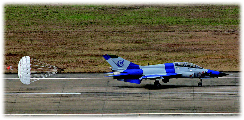 当 α = 180° 时,cos α = − 1,W = − Fs,表示作用力与物体位移方向相反。例如,在某些飞机着陆滑跑中,要打开尾部的减速伞(图 1-4)。在这个过程中,减速伞拉力的方向与飞机位移的方向相反,对飞机做负功,也可以说飞机克服这个拉力做了功。