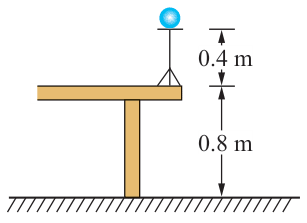 1.如图所示,水平桌面距地面 0.8 m,一质量为 2 kg 的小球放在距桌面 0.4 m 的支架上。小球可视为质点,取重力加速度 g = 10 m/s2。