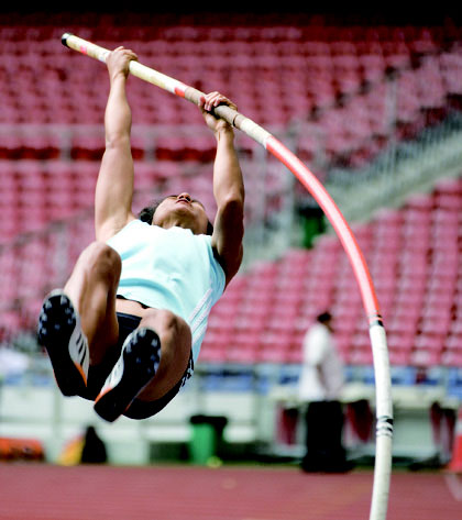*6.早期人们用不易弯曲的竹竿或金属杆进行撑竿跳高,后来采用了有弹性的玻璃纤维杆,如图所示,撑竿跳高的世界纪录也因此有了很大的提高。请上网查询,解释为何使用弹性玻璃纤维杆有助于撑竿跳高成绩的提高。