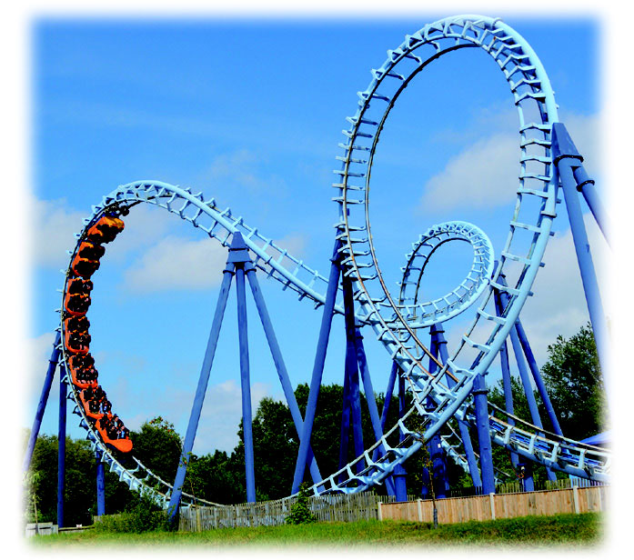 过山车(图 1-25)在最高点无动力释放后,会沿着轨道下滑、爬升、翻转,速度时快时慢,惊险刺激。过山车在运行过程中既有重力势能,又有动能。高度减小时,重力势能减小,动能增大;高度增大时,重力势能增大,动能减小。当重力势能与动能发生变化时,它们之间遵循着什么规律?本节我们将学习机械能,并研究动能与势能转化时遵循的规律。