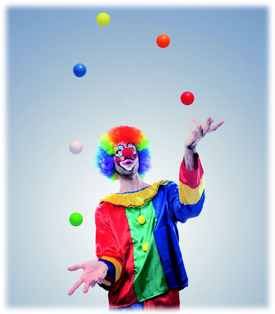 田径场上投掷出的链球、铅球、铁饼、标枪以及杂技表演中抛出去的球在空中的运动(图 2-19)都可视为抛体运动。以一定的初速度将物体抛出,物体仅在重力作用下所做的运动,称为抛体运动(projectile motion)。根据抛出物体的初速度方向,我们可把抛体运动分为平抛运动、竖直上抛运动、竖直下抛运动和斜抛运动(斜上抛运动和斜下抛运动)。