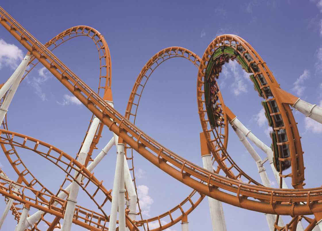 图示为游乐场内过山车的照片。过山车是一种颇受人们欢迎的游乐项目,过山车上的游客随过山车沿轨道做曲线运动。曲线运动与之前学过的直线运动有不同的特点,具有更复杂的规律。过山车上的游客在运动过程中的速度、加速度是如何变化的?受力情况又是怎样的?