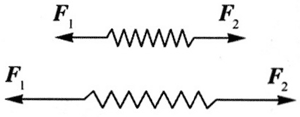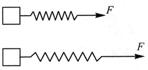 这里的公式 W = Fscosθ 以及多个力做的总功等于合力做的功,均只适用于质点,而一般情况下,多个外力对物体做功的代数和并不一定可以用合外力与位移的内积来计算。这是因为一方面对非质点的情形,如果作用于物体的多个力并非一定是共点力,并不能用合力描述;另一方面各个力的作用点的位移也可能并不一致。例如,作用于弹簧两端的拉力做的功和作用于刚体使之加速旋转的力偶做的功。教师可视具体情况引导学生分析如图 2 所示过程中,作用于轻弹簧两端、等大、反向的恒力 F1 和 F2 将弹簧拉长 x 的过程中所做的总功。