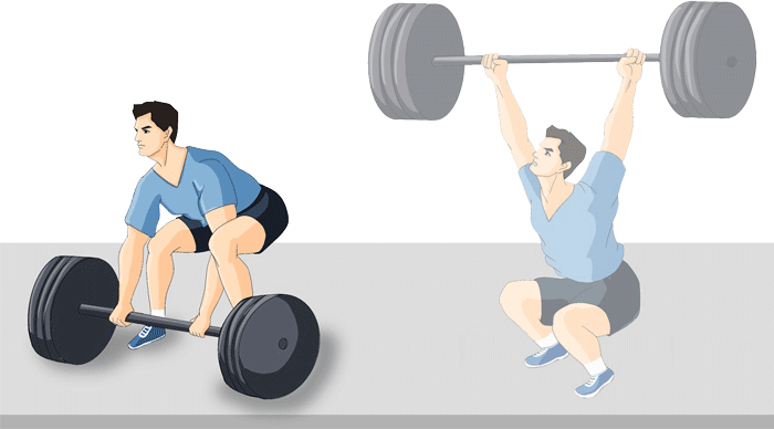 - 举重运动员在图 7–17 所示的抓举过程中,将 150 kg 的杠铃举高了 63 cm,所用的时间是 0.8 s。求这一过程中运动员举杠铃的平均功率。