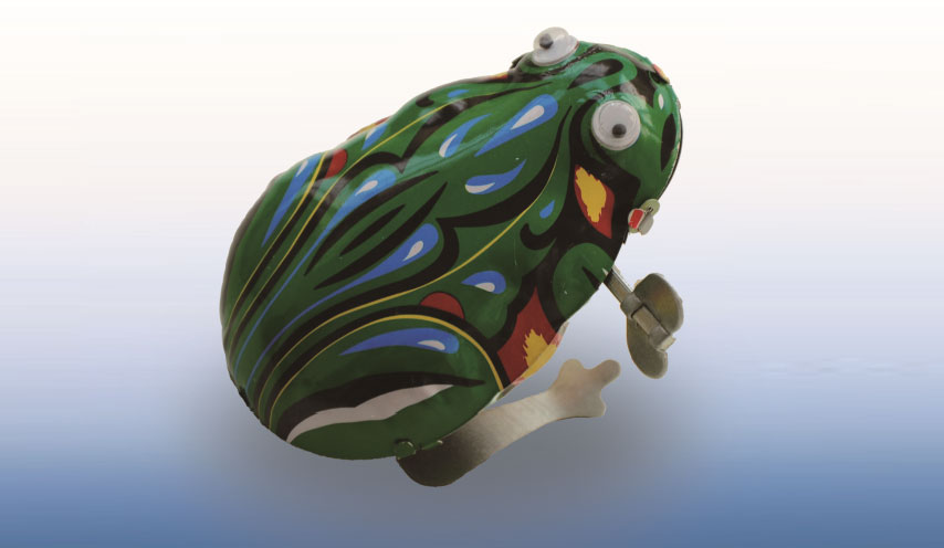 将图 7–32 所示的玩具青蛙拧紧发条后放在地上,玩具青蛙便能自行跳跃前进。图 7–33 所示的运动员张弓搭箭,蓄势待发,当他放开弓弦后,离弦之箭便飞驰而去。实际上,跳跃的玩具青蛙和飞驰而去的箭所获得的动能分别来自发条被拧紧和弓被拉开时发生弹性形变所蓄积的能量。