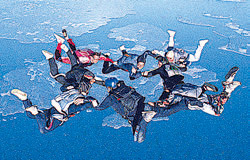 2.图 1–1 是特技跳伞运动员的空中造型图。当运动员们保持该造型向下落时,若其中某一位运动员以对面的运动员为参考系,则他自己的运动情况怎样?当他俯视大地时,看到大地迎面而来,他是以什么物体为参考系的?