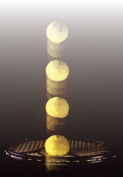 物体受到力的作用往往会发生形变。采用高速频闪照相技术记录下网球被球拍击打后的系列画面,网球的形变清晰可见。你知道吗?正是因为制造网球的材料具有较好的弹性,网球才能迅速恢复原来的形状。