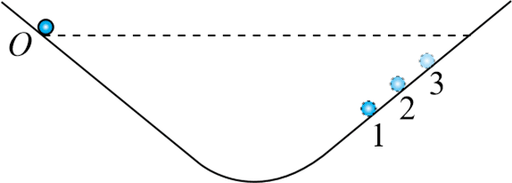 2.如图所示,小球从左侧斜面上的 O 点由静止释放后沿斜面向下运动,并沿右侧斜面上升。斜面上先后铺垫三种粗糙程度逐渐降低的材料,小球沿右侧斜面上升到的最高位置依次为 1、2、3。对 三次实验结果进行对比,可以得到的最直接的结论是