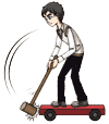 参考解答:不可行。人、锤子和平板车组成的系统在水平方向不受外力,系统水平方向动量守恒。因此小车不会持续向右运动。根据动量守恒定律,人将锤子向左上方举起时,车会向右运动;人在右下方抡锤子时,车会向左运动;锤子击打到车时,锤子和人、车的速度都变为 0。