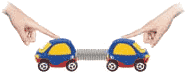 两个穿滑冰鞋的同学静止站在滑冰场上,不论谁推对方,两人都会向相反方向滑去(图 1-12)。在推动前,两人的动量都为 0 ;推动后,每个人的动量都发生了变化。那么,他们的总动量在推动前后是否也发生了变化呢?下面,我们通过实验来作进一步的探究。