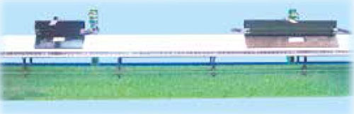 两个质量相等且带有弹片的滑块装上相同的遮光板,放置在气垫导轨的中部。将两滑块靠在一起并压缩弹片,用细线把它们拴住,两滑块处于静止状态。烧断细线,两滑块被弹片弹开后朝相反方向做匀速运动(图 1-13)。测量遮光板通过光电门的时间,计算滑块的速度。在两滑块弹开前后,它们的总动量变化了吗?