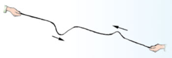 如图 3-28 所示,两位同学分别握着长绳的一端上下抖动,使长绳产生两列相向传播的波。仔细观察两列波相遇时和相遇后各自的运动。