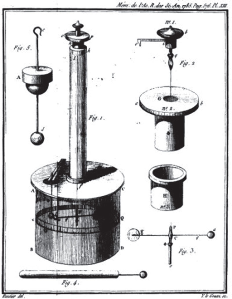 通过节首图库仑定律实验装置手稿照片,启发学生体会库仑扭秤实验装置(图 9–8 中 Fig 1)设计中的一些细节(图 9– 8 中 Fig 2 ~ 5),了解科学家在探究库仑定律过程中是如何巧妙解决电荷量测量、微小库仑力测量等实验过程中的许多问题的。